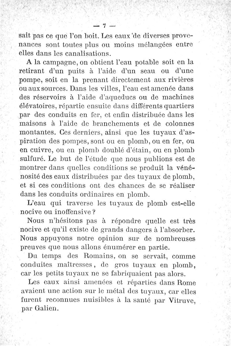 Etude sur les eaux potables et le plomb