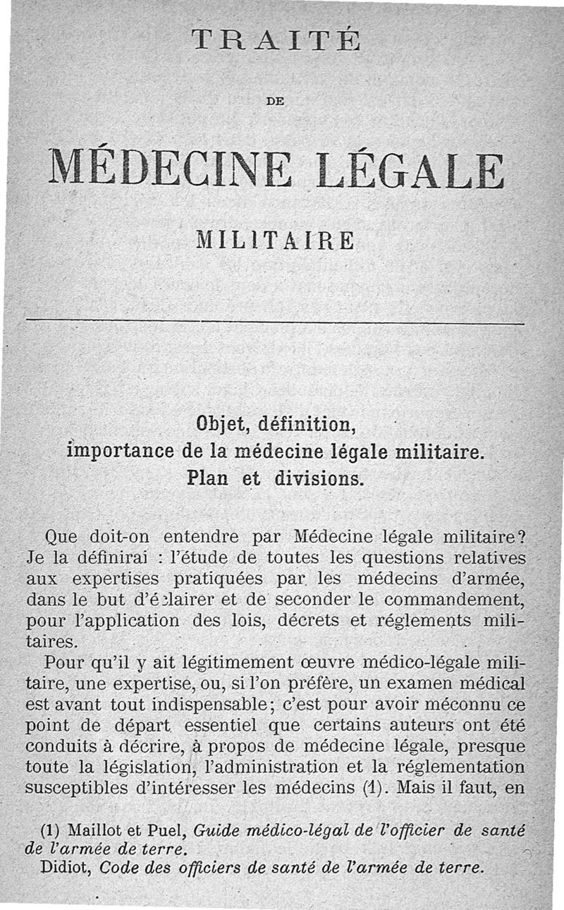 Traité de médecine légale militaire