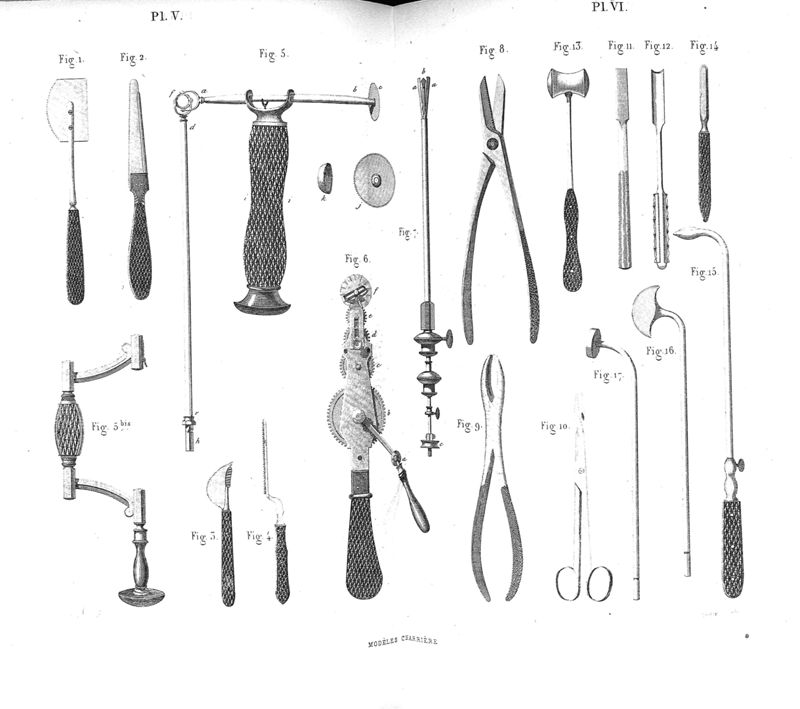 Spécimen d'instruments de chirurgie modèles Charrière