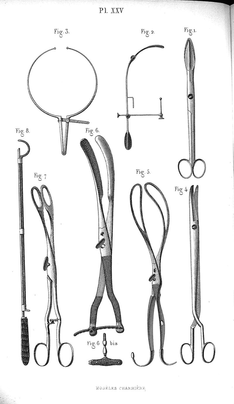 Spécimen d'instruments de chirurgie modèles Charrière