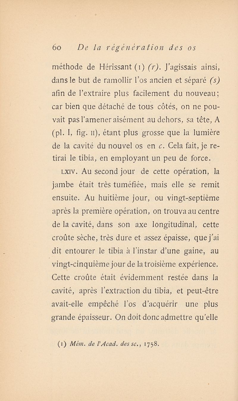 Expériences sur la régénération des os qui ont été en totalité ou en grande partie détruits par des maladies, et ou par suite de l'extrême connexité des sujets, on traite aussi d'une manière succincte des fractures et de la force que la nature emploie pour allonger les os pendant leur croissance
