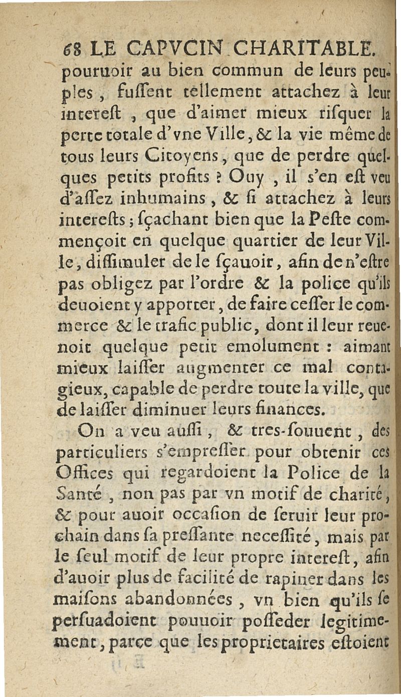 Preservatifs et remedes contre la peste, ou le capucin charitable, enseignant la methode pour remedier aux grandes miseres que la peste a coutume de causer parmy les peuples...