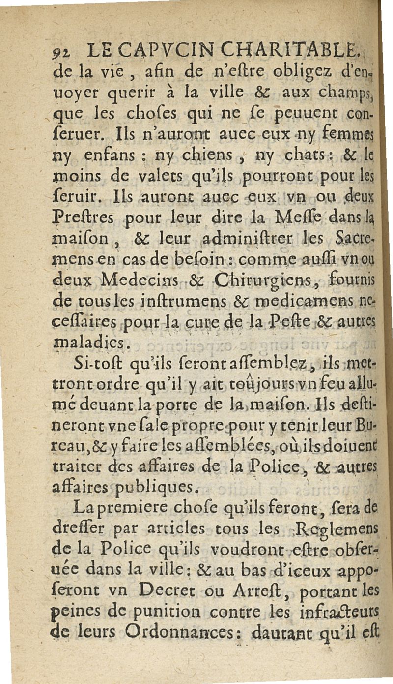 Preservatifs et remedes contre la peste, ou le capucin charitable, enseignant la methode pour remedier aux grandes miseres que la peste a coutume de causer parmy les peuples...
