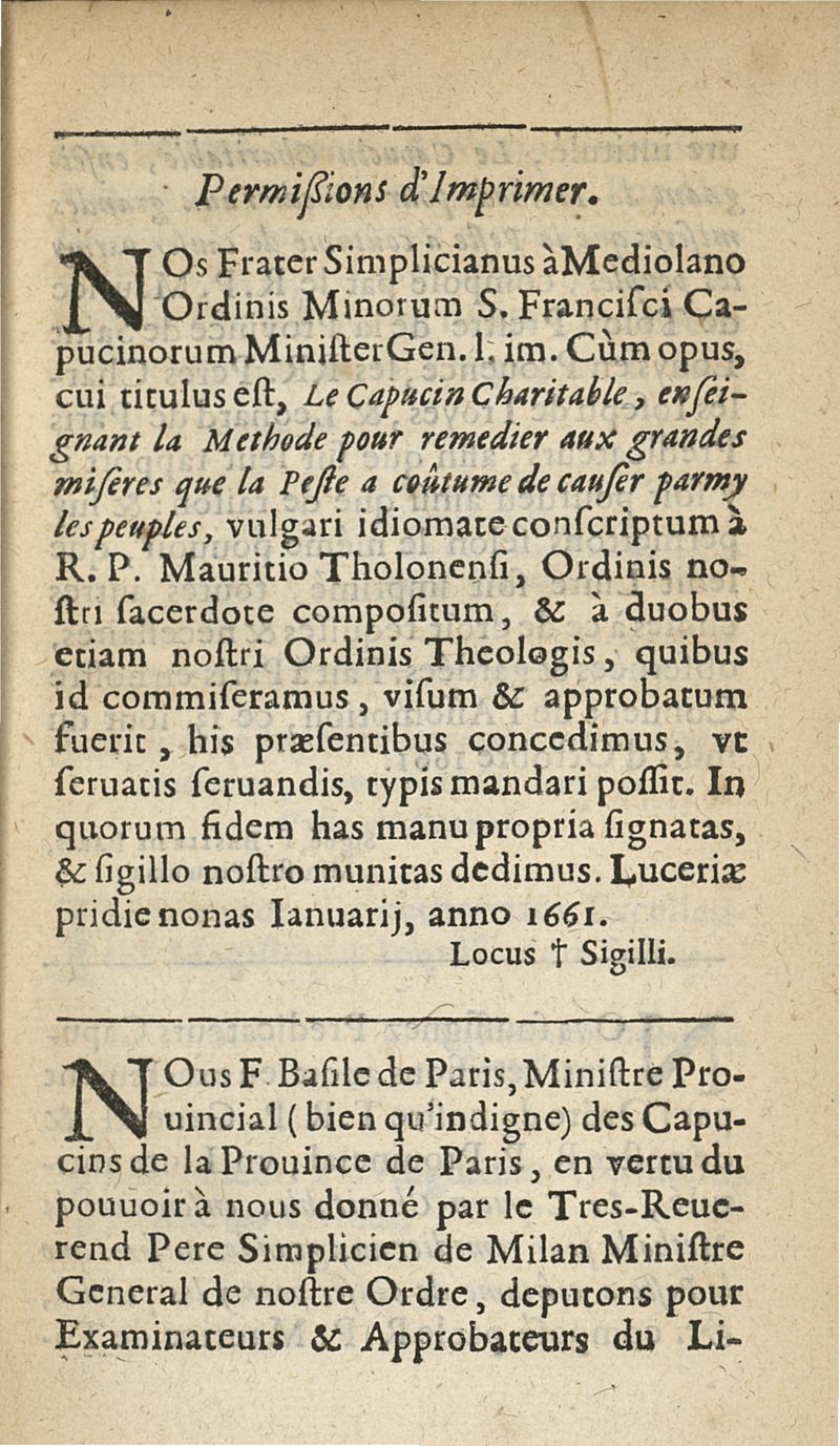Preservatifs et remedes contre la peste, ou le capucin charitable, enseignant la methode pour remedier aux grandes miseres que la peste a coutume de causer parmy les peuples...