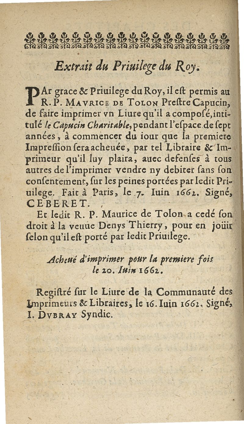 A Paris, chez la veuve de Denys Thierry, 1668.