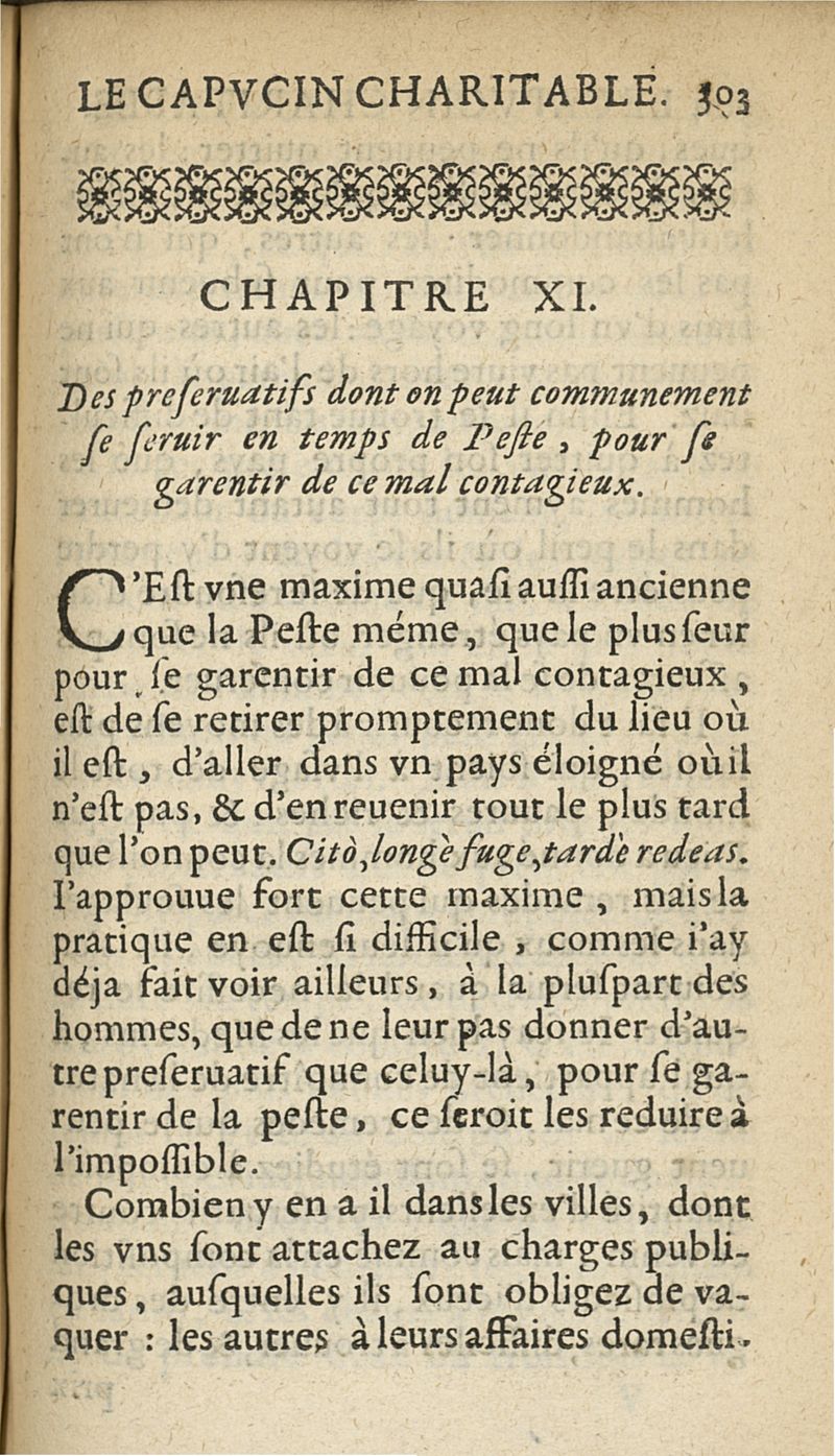 Preservatifs et remedes contre la peste, ou le capucin charitable, enseignant la methode pour remedier aux grandes miseres que la peste a coutume de causer parmy les peuples...