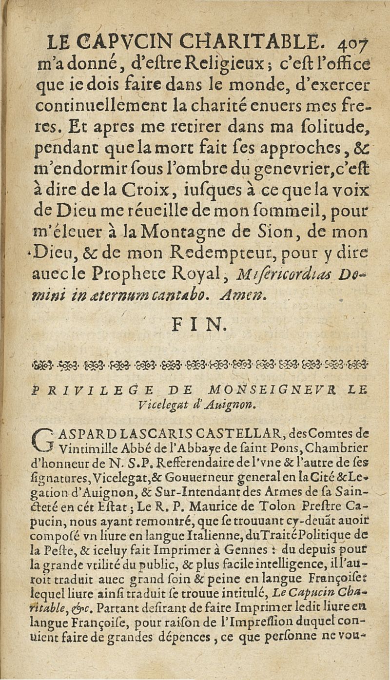 Preservatifs et remedes contre la peste, ou le capucin charitable, enseignant la methode pour remedier aux grandes miseres que la peste a coutume de causer parmy les peuples...