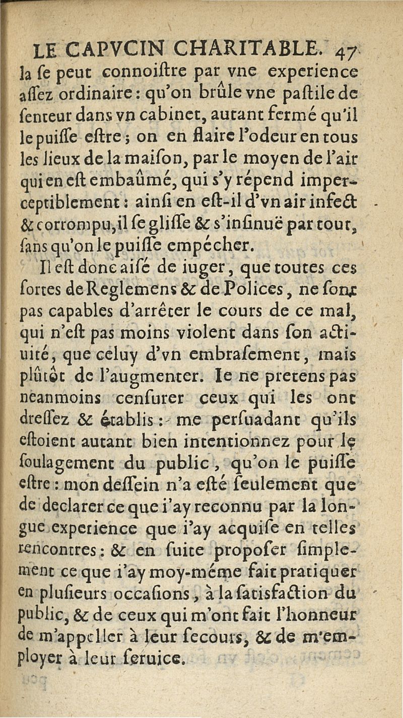 Preservatifs et remedes contre la peste, ou le capucin charitable, enseignant la methode pour remedier aux grandes miseres que la peste a coutume de causer parmy les peuples...