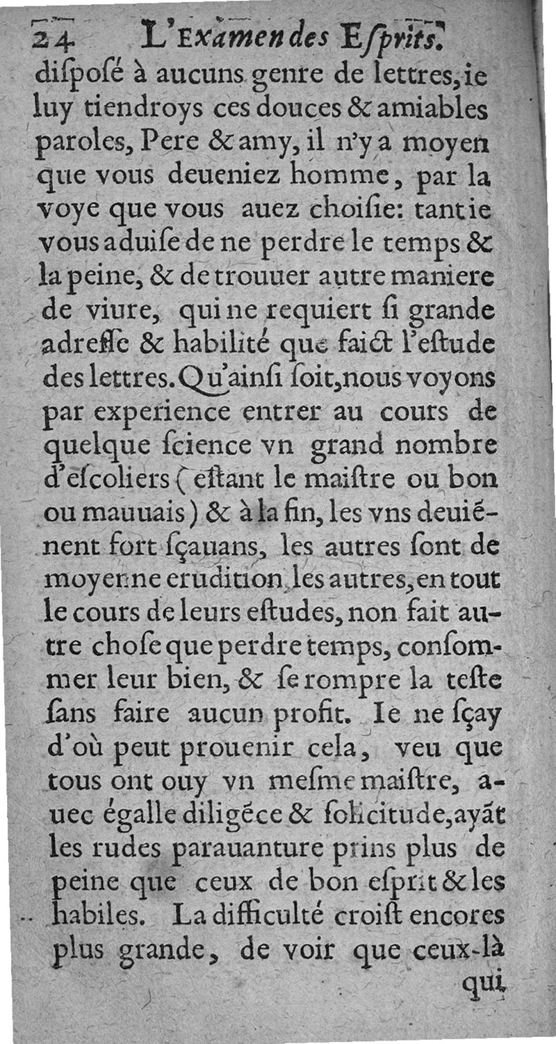 Examen des esprits propres et naiz aux sciences. ...; trad. de l'espagnol en frnaçois par Gabriel Chappuys