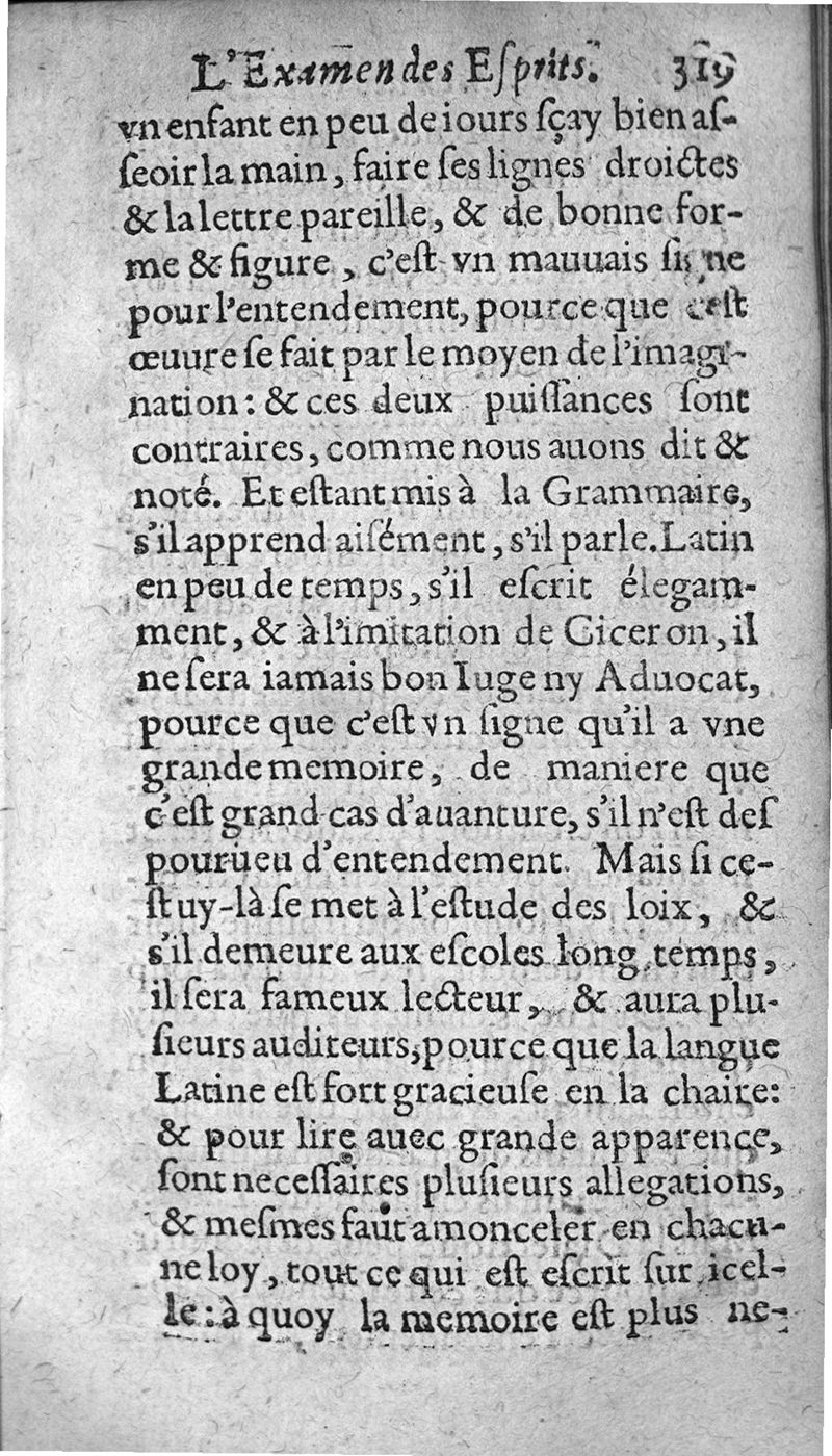 Examen des esprits propres et naiz aux sciences. ...; trad. de l'espagnol en frnaçois par Gabriel Chappuys