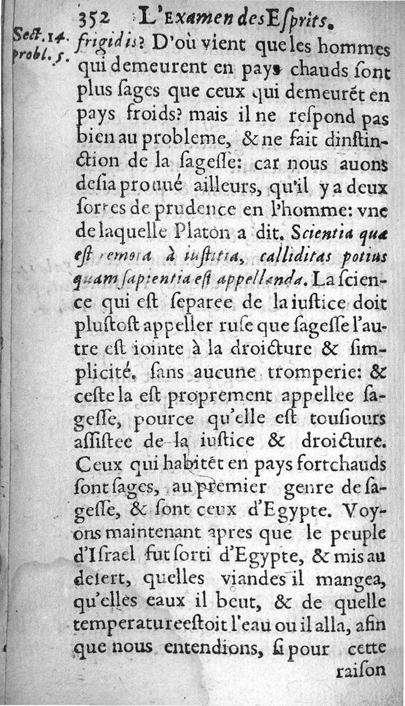 Examen des esprits propres et naiz aux sciences. ...; trad. de l'espagnol en frnaçois par Gabriel Chappuys