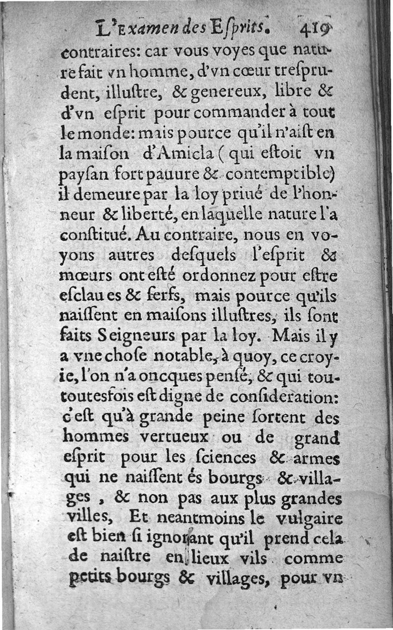 Examen des esprits propres et naiz aux sciences. ...; trad. de l'espagnol en frnaçois par Gabriel Chappuys