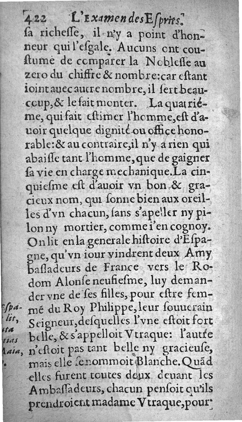 Examen des esprits propres et naiz aux sciences. ...; trad. de l'espagnol en frnaçois par Gabriel Chappuys