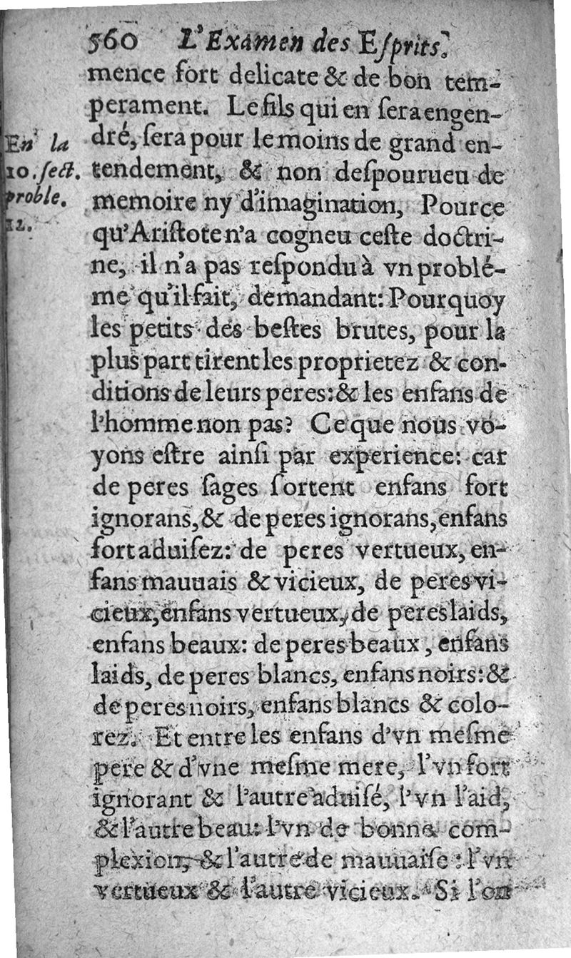 Examen des esprits propres et naiz aux sciences. ...; trad. de l'espagnol en frnaçois par Gabriel Chappuys