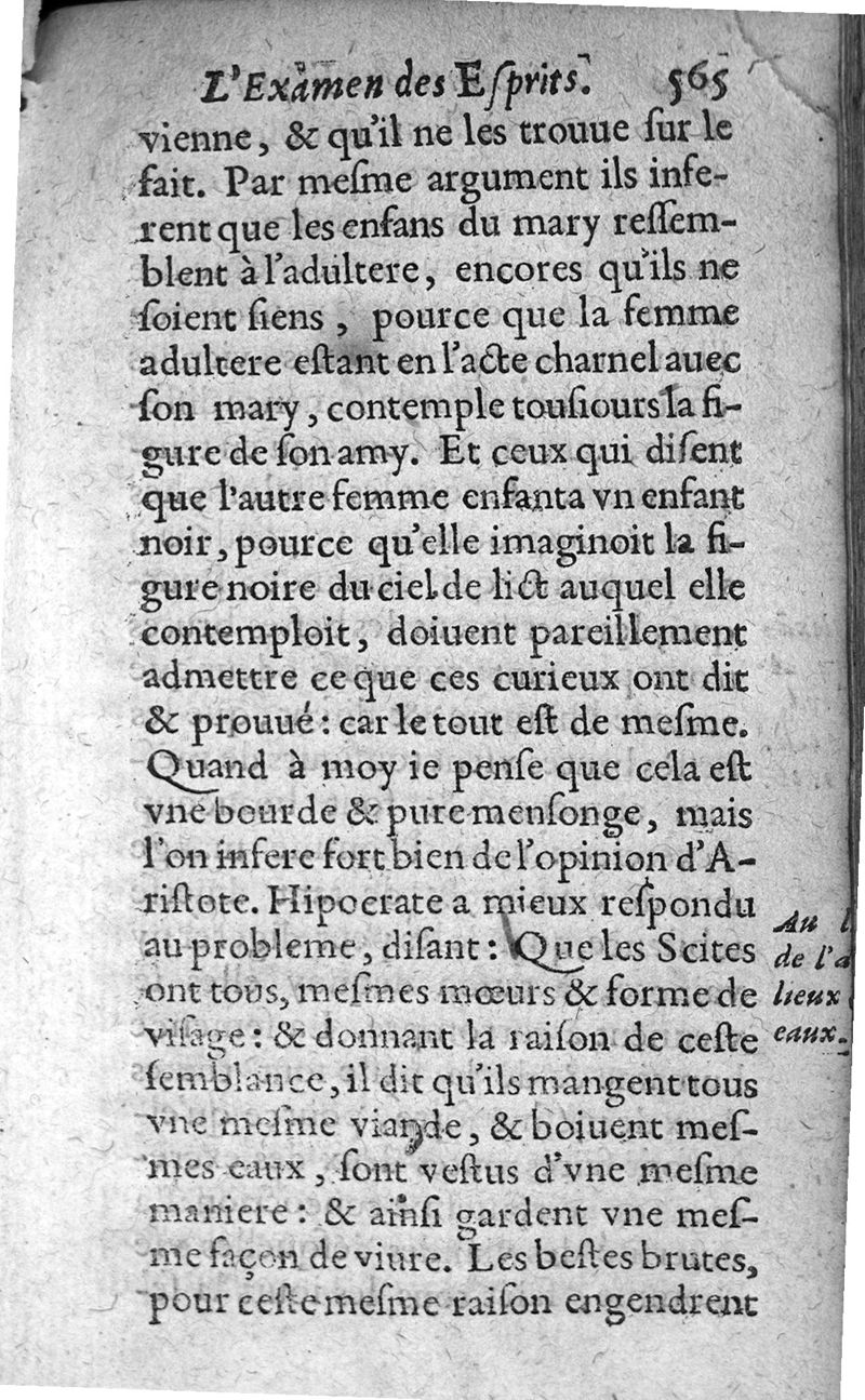 Examen des esprits propres et naiz aux sciences. ...; trad. de l'espagnol en frnaçois par Gabriel Chappuys