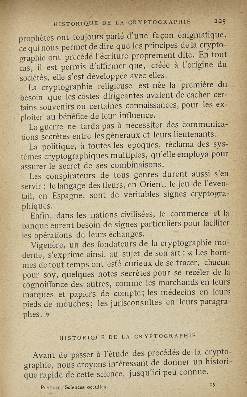Les sciences occultes, divination, calcul des probabilités, oracles et sorts, songes, graphologie, chiromancie, phrénologie, physiognomonie, cryptographie, magie, kabbale, alchimie, astrologie, etc.