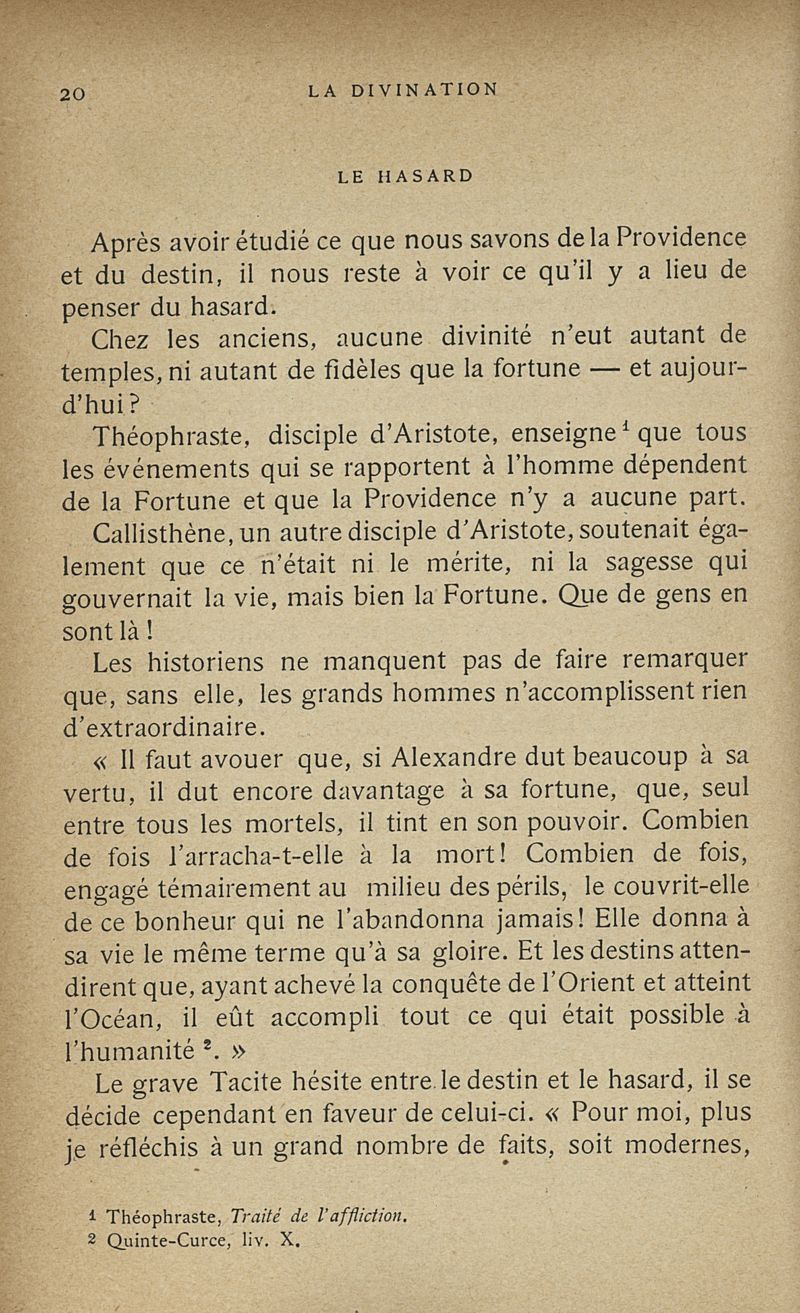 Les sciences occultes, divination, calcul des probabilités, oracles et sorts, songes, graphologie, chiromancie, phrénologie, physiognomonie, cryptographie, magie, kabbale, alchimie, astrologie, etc.