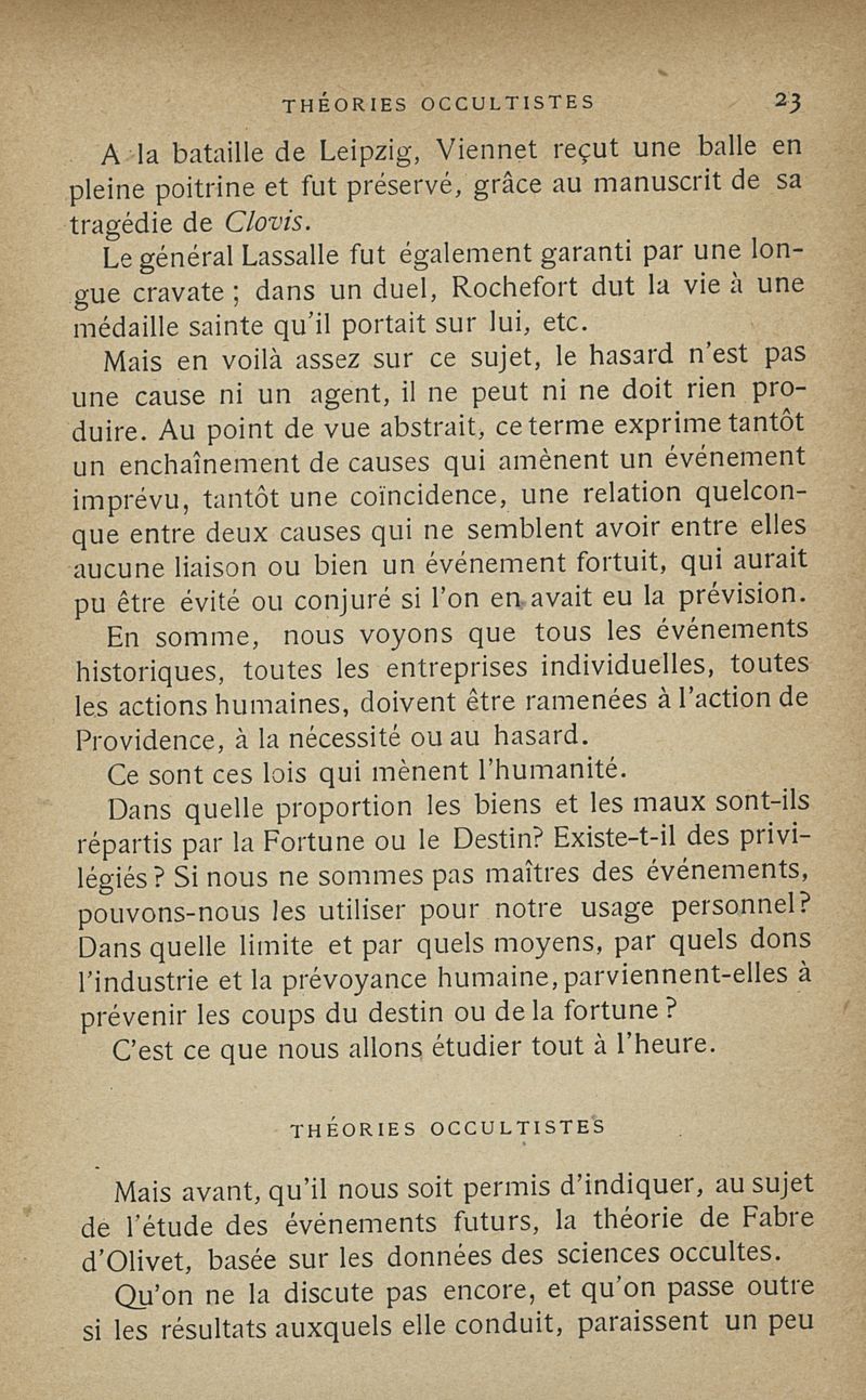 Les sciences occultes, divination, calcul des probabilités, oracles et sorts, songes, graphologie, chiromancie, phrénologie, physiognomonie, cryptographie, magie, kabbale, alchimie, astrologie, etc.