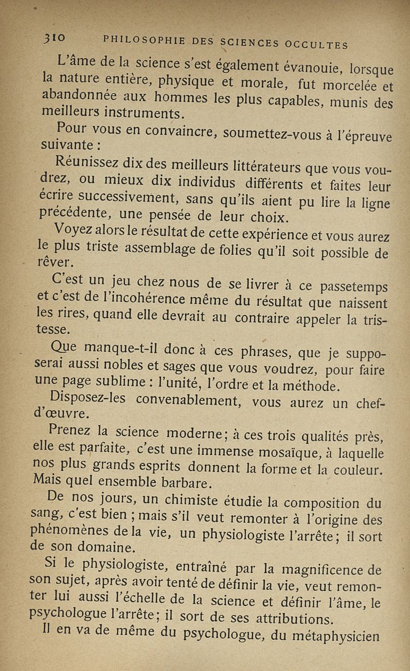 Les sciences occultes, divination, calcul des probabilités, oracles et sorts, songes, graphologie, chiromancie, phrénologie, physiognomonie, cryptographie, magie, kabbale, alchimie, astrologie, etc.