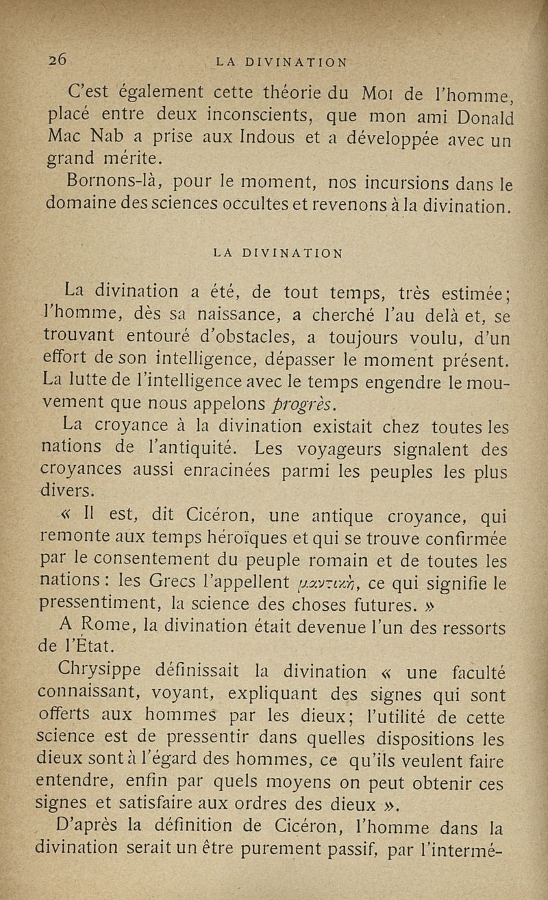 Les sciences occultes, divination, calcul des probabilités, oracles et sorts, songes, graphologie, chiromancie, phrénologie, physiognomonie, cryptographie, magie, kabbale, alchimie, astrologie, etc.