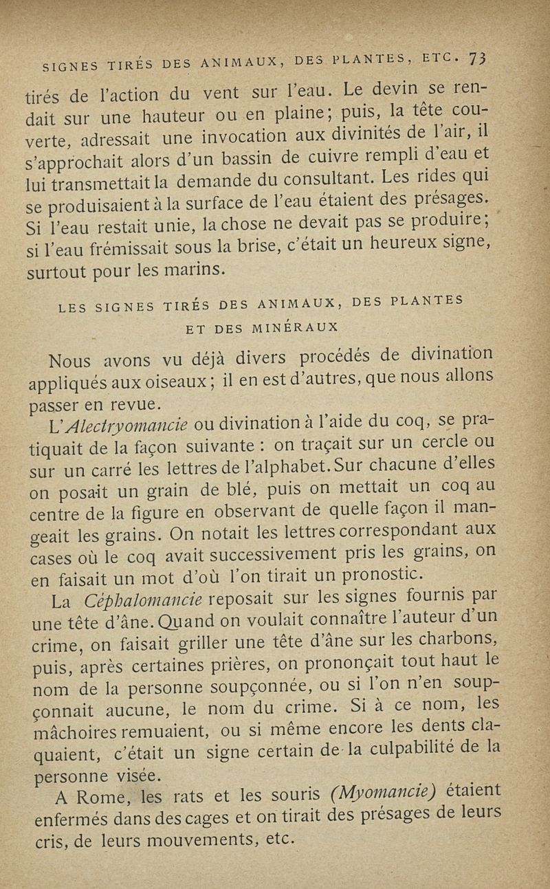 Les sciences occultes, divination, calcul des probabilités, oracles et sorts, songes, graphologie, chiromancie, phrénologie, physiognomonie, cryptographie, magie, kabbale, alchimie, astrologie, etc.