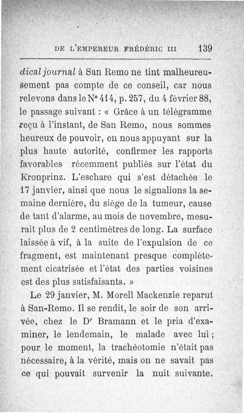 La maladie de l'empereur Frédéric III exposée d'après les documents officiels et les rapports... / par le professeur Bardeleben,... de Bergmann,... le Dr Bramann,... [et al.] ; trad. de l'allemand par le Dr Luc,...