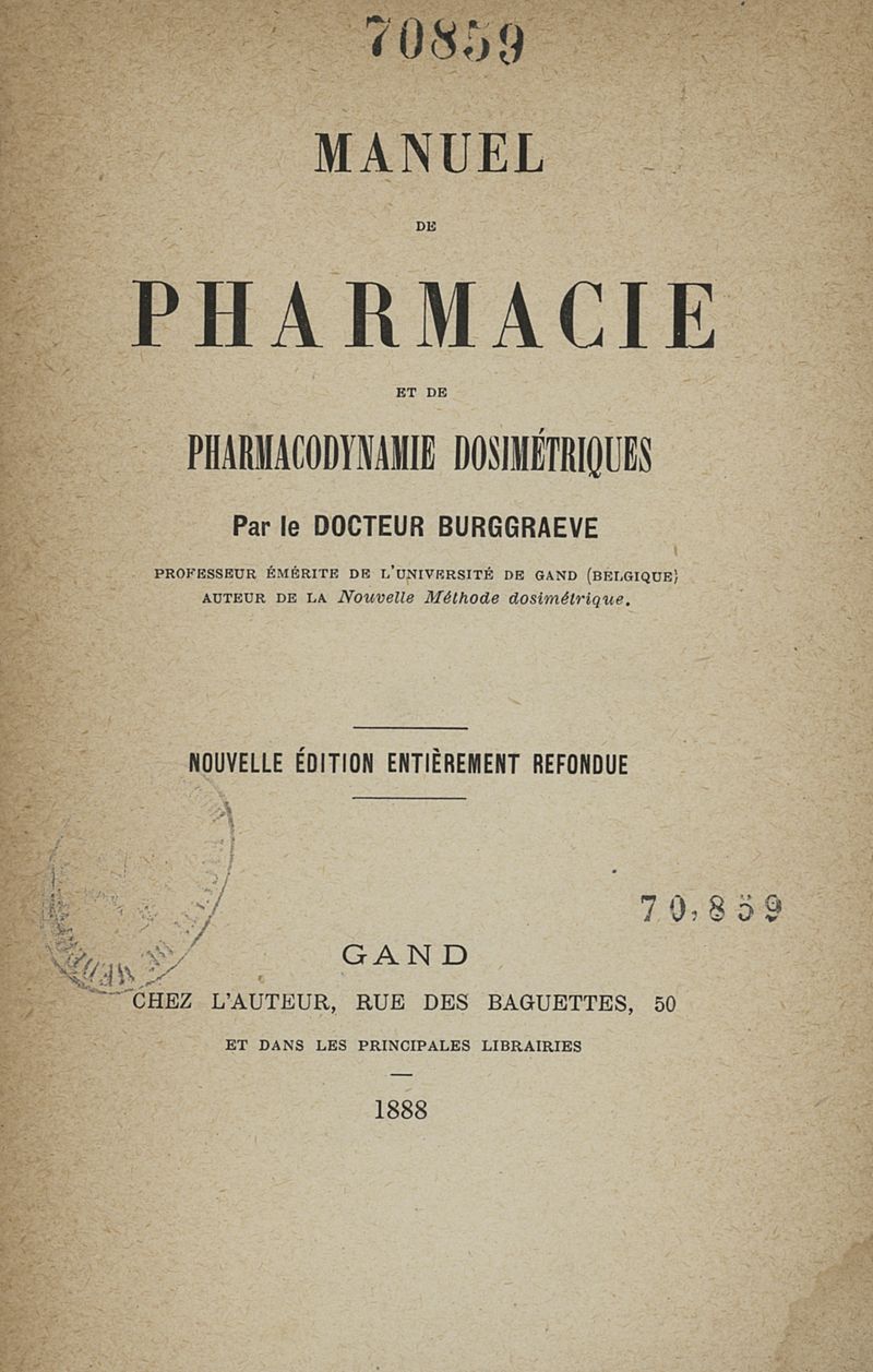 Manuel de pharmacie et de pharmacodynamie dosimétrique