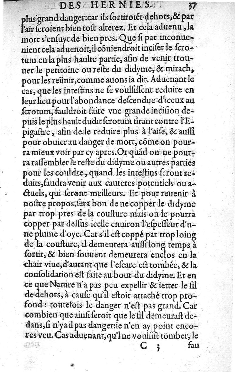 Traité des Hernies contenant une ample declaration de toutes leurs especes, et autres excellentes parties de la Chirurgie,assavoir de la pierre, des cataractes des yeux, et autres maladies, desquelles comme la cure est perilleuse, aussi est elle de peu d’hommes bien exercée : Avec leurs causes, signes, accidens, anatomie des parties affectées, et leur entiere guarison : Par Pierre Franco de Turriers en Provence, demeurant à present à Orange