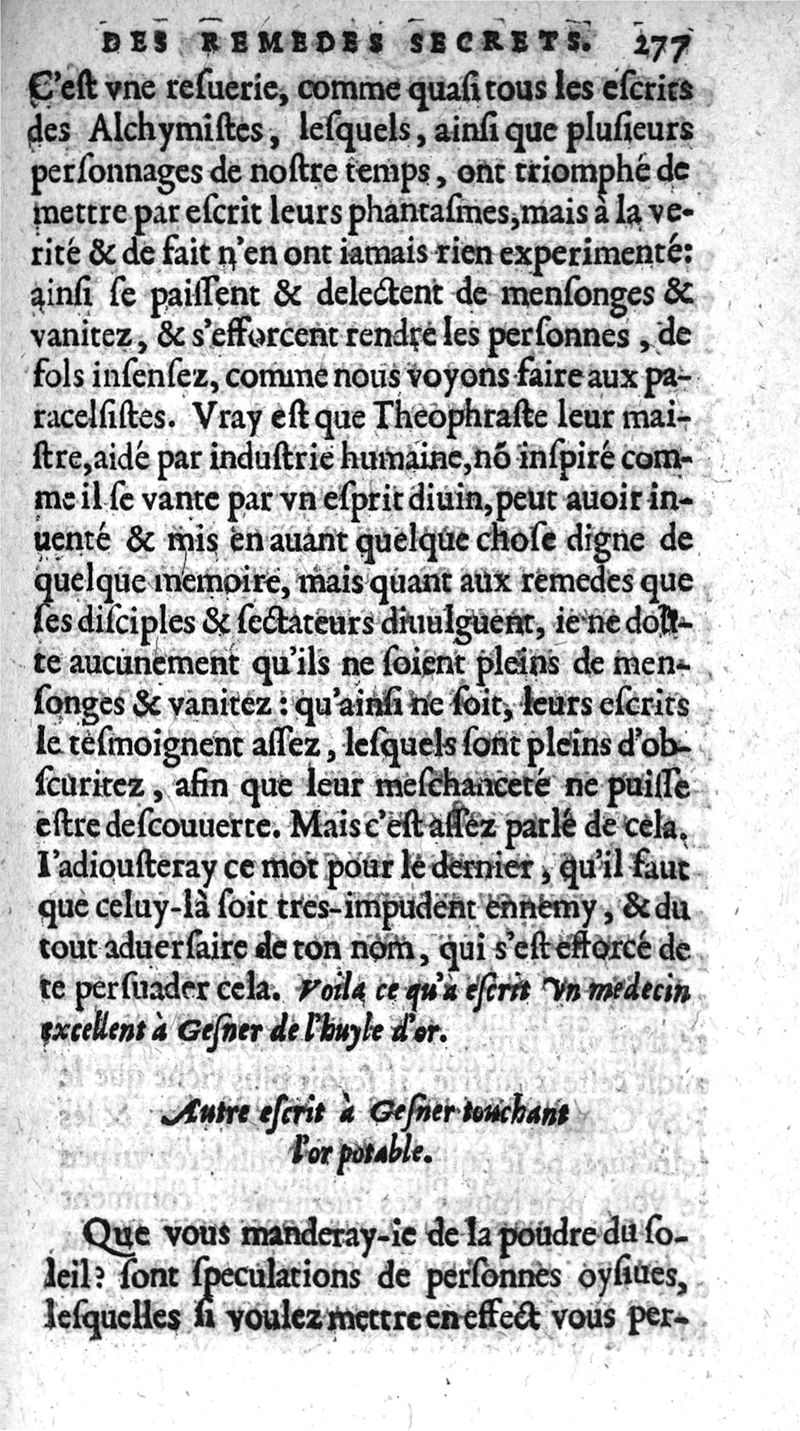 Quatre livres des secrets de medecine, et de la philosophie chimique. Faicts francois par M. Jean Liebault...