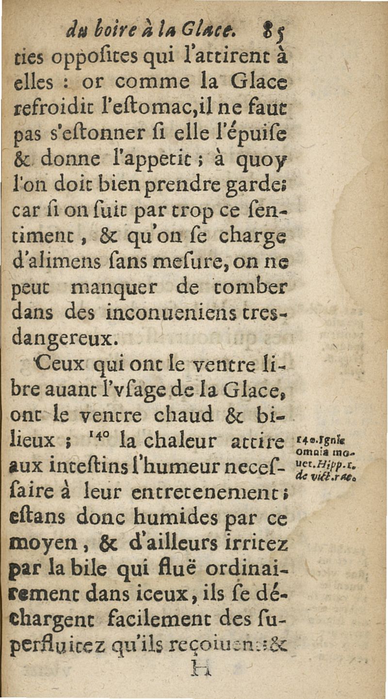 Hippocrate de l'usage du boire a la glace. Pour la conservation de la santé
