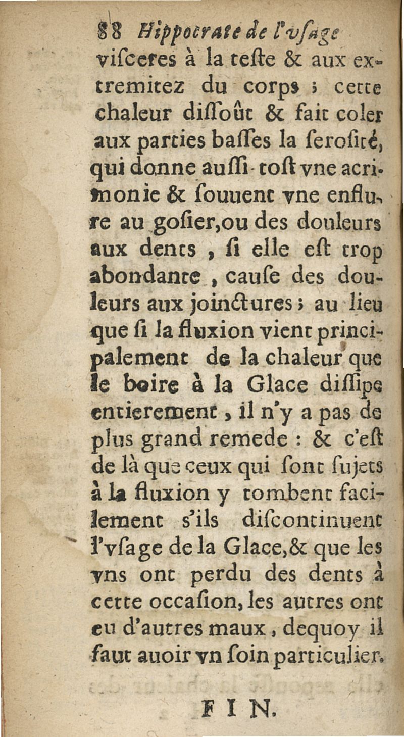 Hippocrate de l'usage du boire a la glace. Pour la conservation de la santé