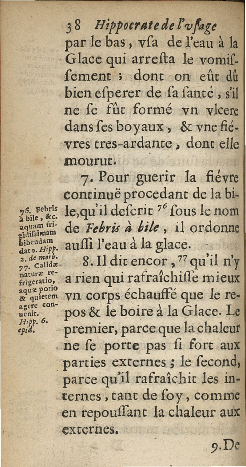Hippocrate de l'usage du boire a la glace. Pour la conservation de la santé