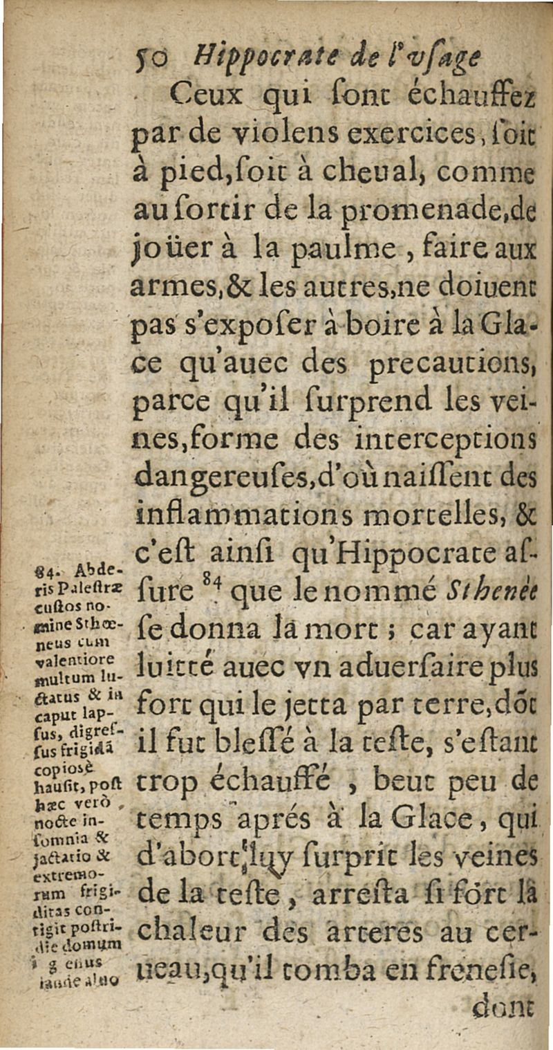 Hippocrate de l'usage du boire a la glace. Pour la conservation de la santé