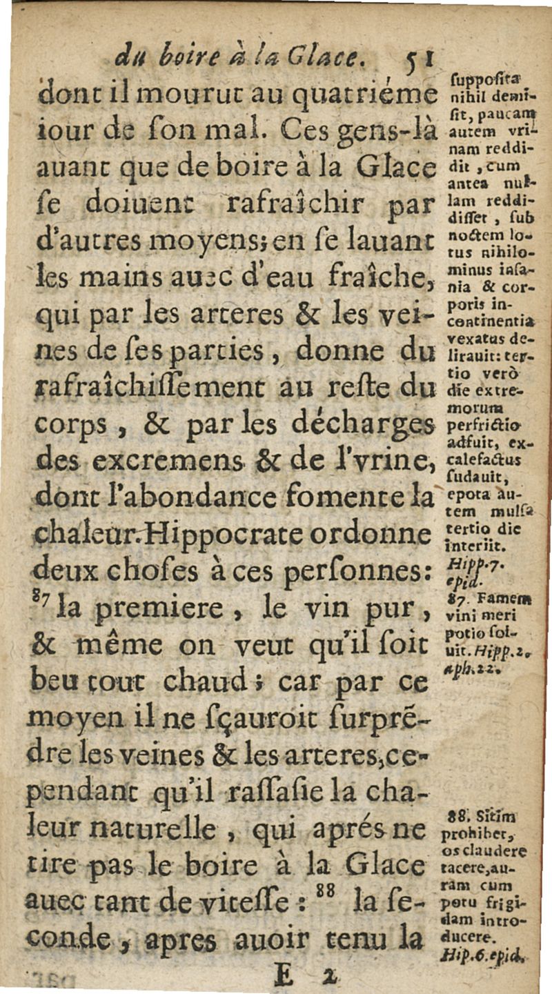Hippocrate de l'usage du boire a la glace. Pour la conservation de la santé