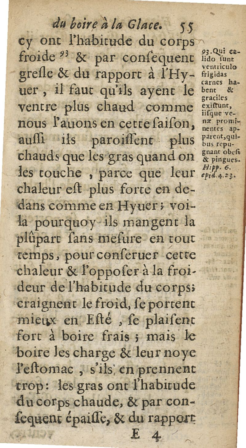Hippocrate de l'usage du boire a la glace. Pour la conservation de la santé