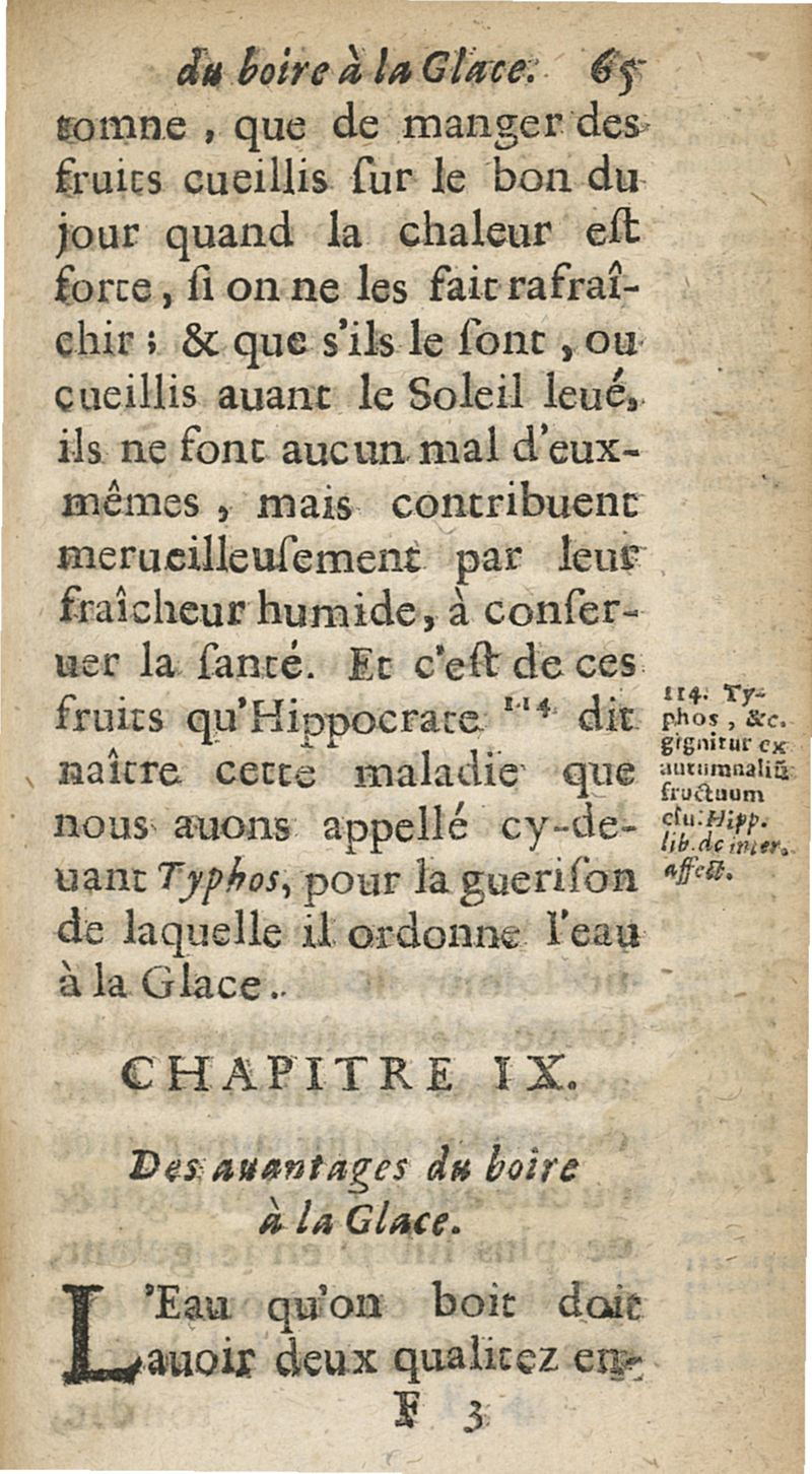 Hippocrate de l'usage du boire a la glace. Pour la conservation de la santé