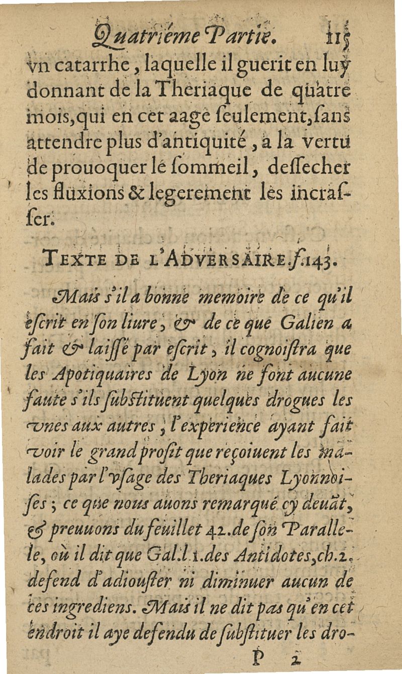 Sycophantie theriacale descouverte dans l'apologie du prallele des viperes et herbes lyonnoises...illustrée de quatre nouvaux paradoxes : du vin, du miel, de la squille, & du temps auquel la theriaque doit estre composée : avec une exacte methode d'user d'icelle...