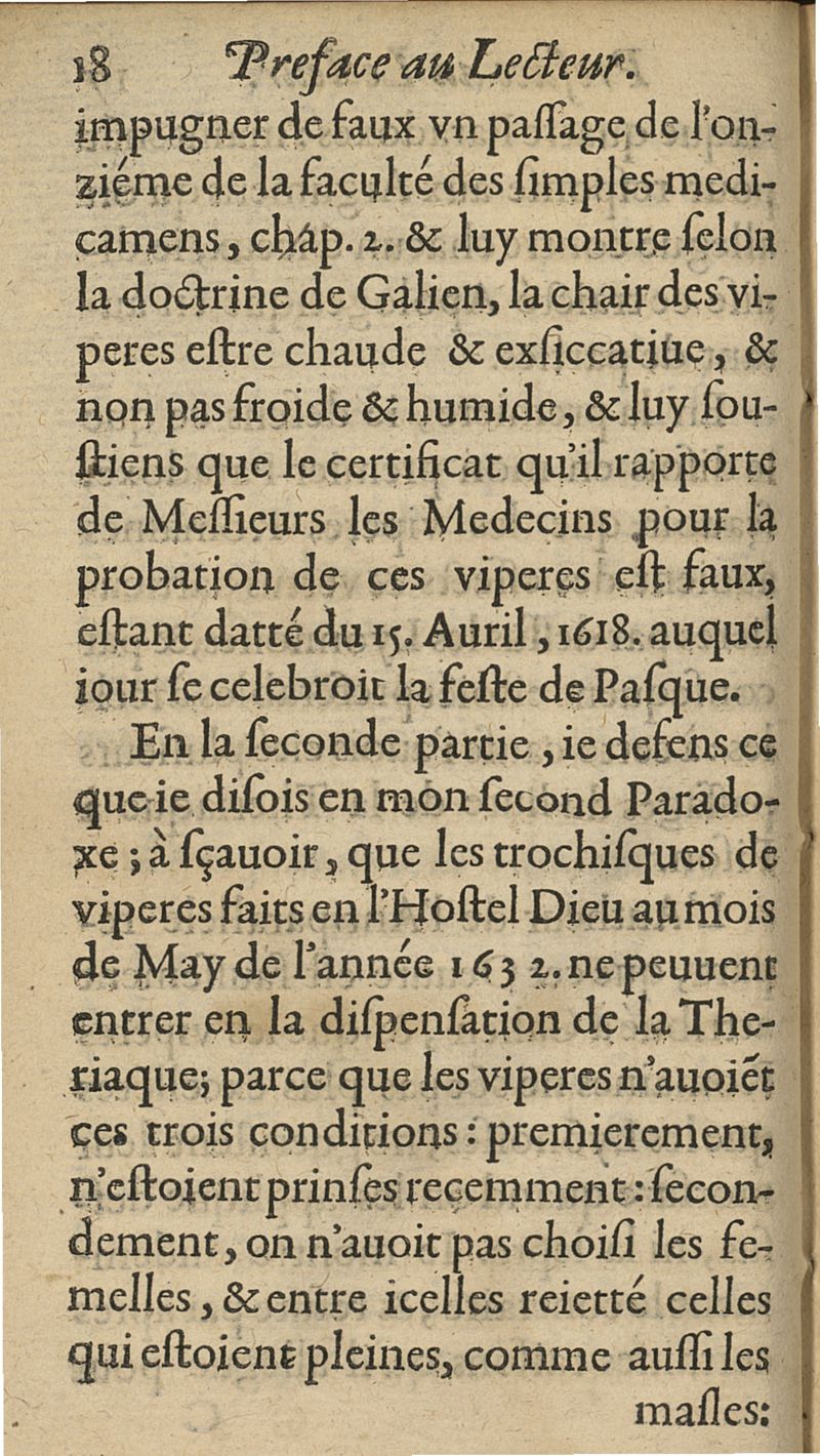 Sycophantie theriacale descouverte dans l'apologie du prallele des viperes et herbes lyonnoises...illustrée de quatre nouvaux paradoxes : du vin, du miel, de la squille, & du temps auquel la theriaque doit estre composée : avec une exacte methode d'user d'icelle...