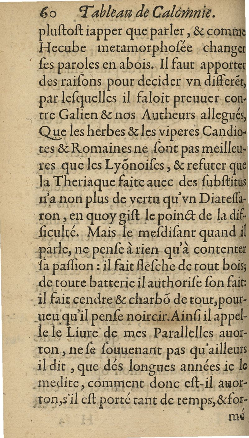 Sycophantie theriacale descouverte dans l'apologie du prallele des viperes et herbes lyonnoises...illustrée de quatre nouvaux paradoxes : du vin, du miel, de la squille, & du temps auquel la theriaque doit estre composée : avec une exacte methode d'user d'icelle...
