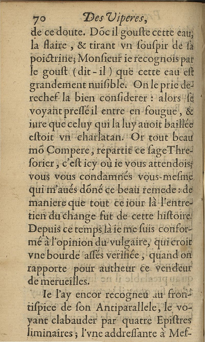Sycophantie theriacale descouverte dans l'apologie du prallele des viperes et herbes lyonnoises...illustrée de quatre nouvaux paradoxes : du vin, du miel, de la squille, & du temps auquel la theriaque doit estre composée : avec une exacte methode d'user d'icelle...
