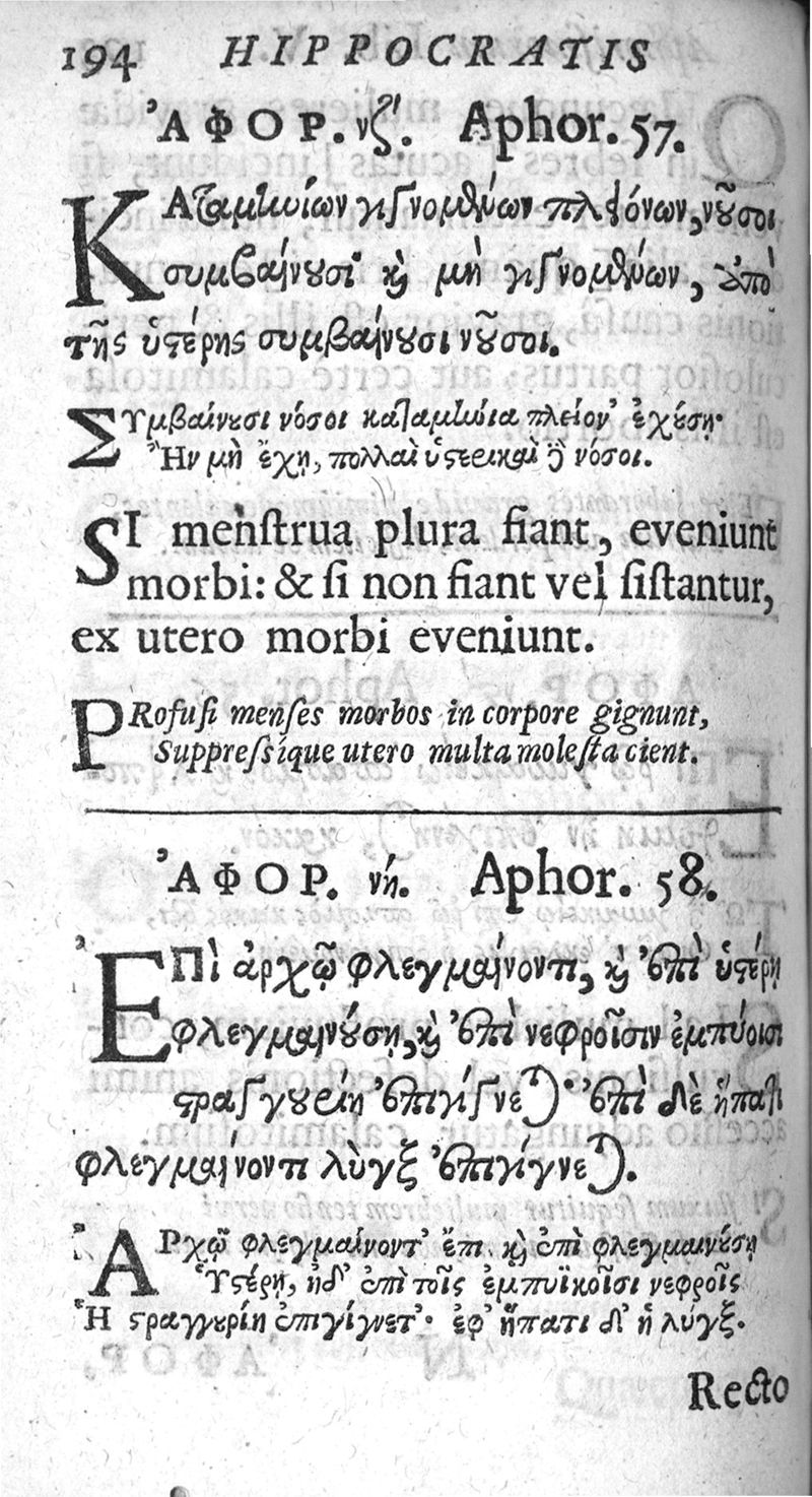 Hippocratous tou megalou hoi aphorismoi pezikoi te kai emmetroi / Hippocratis Magni Aphorismi Soluti et Metrici, Interprete Joanne Heurnio, Medico Ultrajectino, Mataphrastis Joanne Frero, Medico-poëta et Radulpho Wintertono, Medicinae et Poeseös Graecae studioso