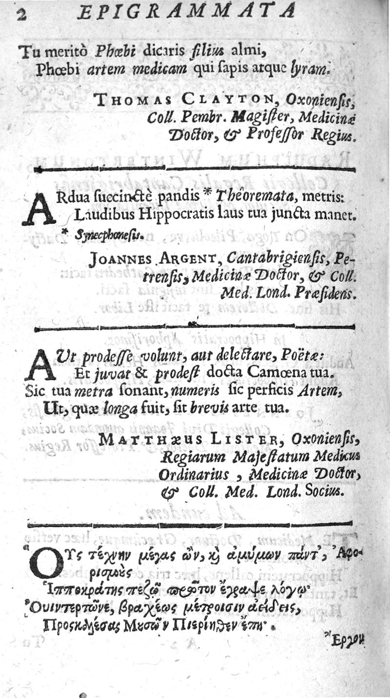 Hippocratous tou megalou hoi aphorismoi pezikoi te kai emmetroi / Hippocratis Magni Aphorismi Soluti et Metrici, Interprete Joanne Heurnio, Medico Ultrajectino, Mataphrastis Joanne Frero, Medico-poëta et Radulpho Wintertono, Medicinae et Poeseös Graecae studioso