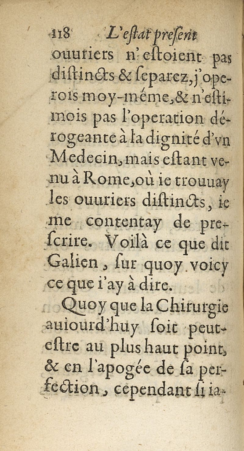 L'Estat present de la chirurgie où il est parlé de la préseance du chirurgien et de l'apothicaire...