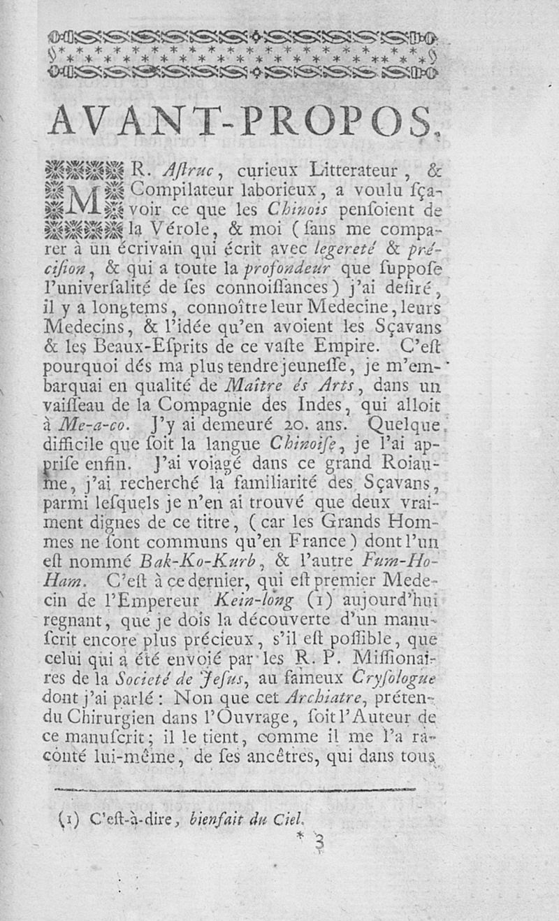 Politique du médecin de Machiavel, ou le chemin de la fortune ouvert aux médecins, ouvrage réduit en forme de conseils par le Dr Fum Ho Ham, et traduit sur l'original chinois par un nouveau maître ès arts de St Cosme. [Par La Mettrie.]. Première partie, qui contient les portraits des plus célèbres médecins de Pékin