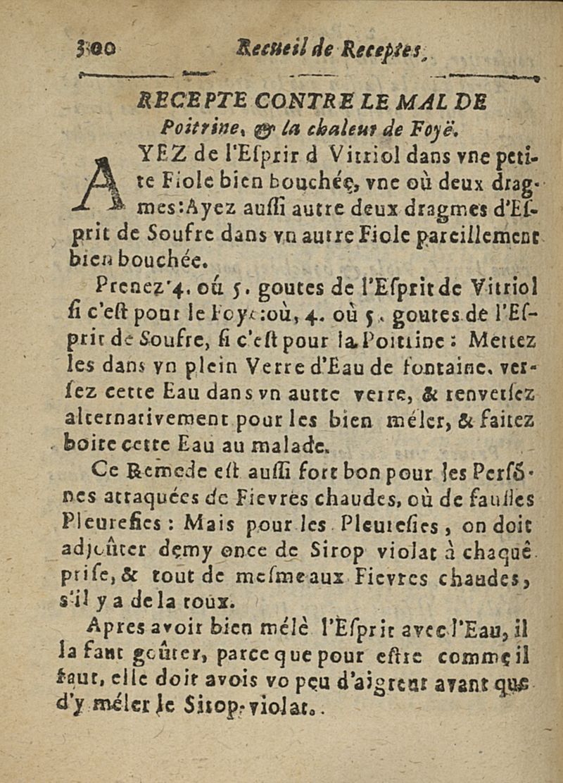 Recueil de receptes choisies expérimentées & approuvées, contre quantité de maux fort cõmuns tant internes qu'externes inveterés, & difficiles à guerir