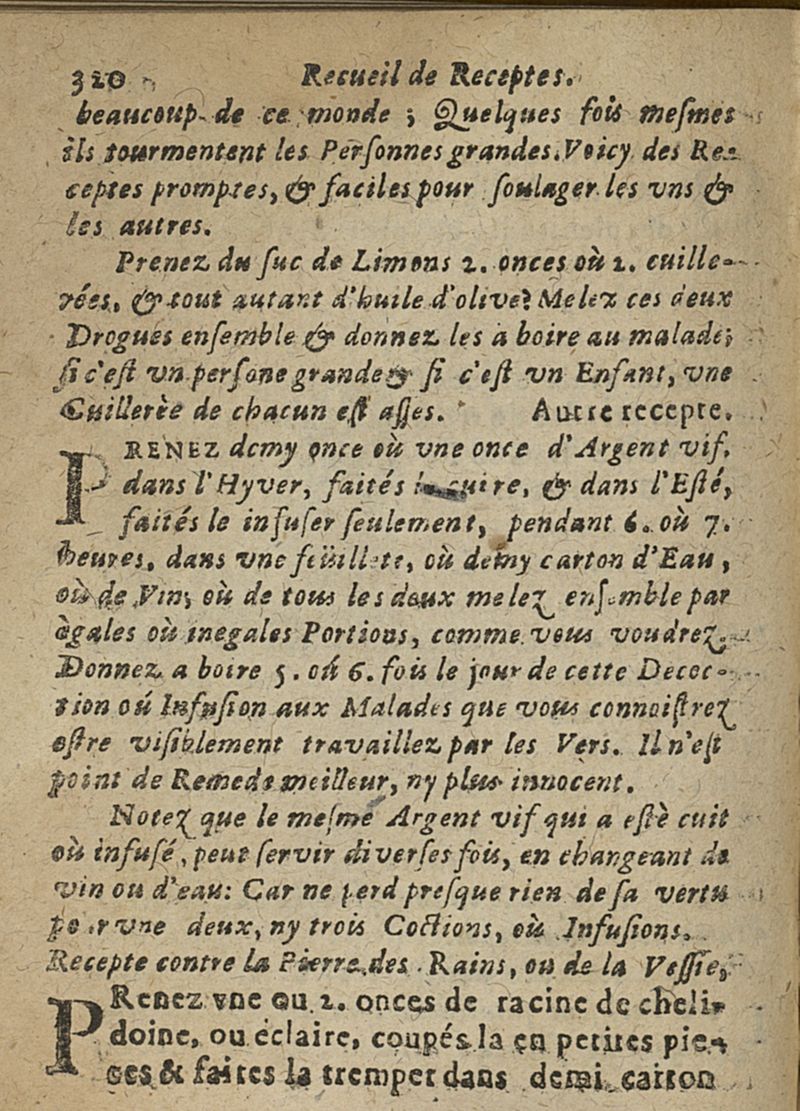 Recueil de receptes choisies expérimentées & approuvées, contre quantité de maux fort cõmuns tant internes qu'externes inveterés, & difficiles à guerir