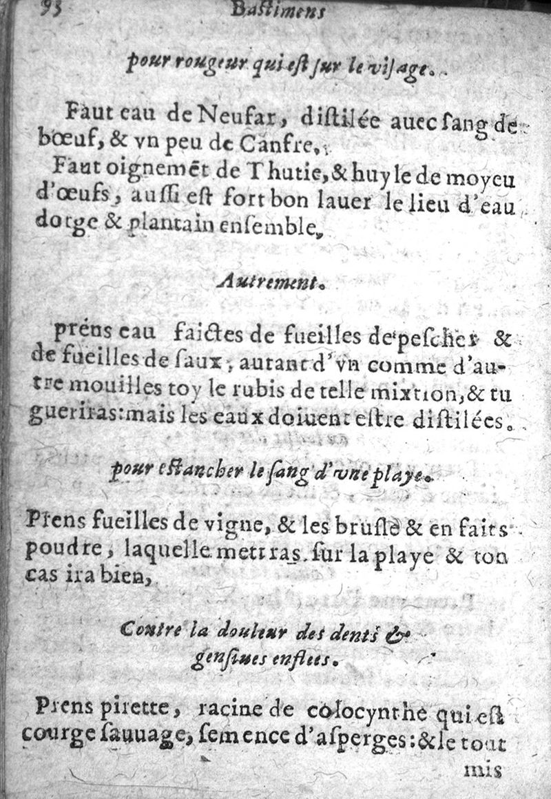 Bastiment de receptes, traduit de l'italien en françois, augmenté d'une infinité de beaux secrets depuis peu mis en usage, avec un autre petit traité de recepte intitulé le plaisant jardin,