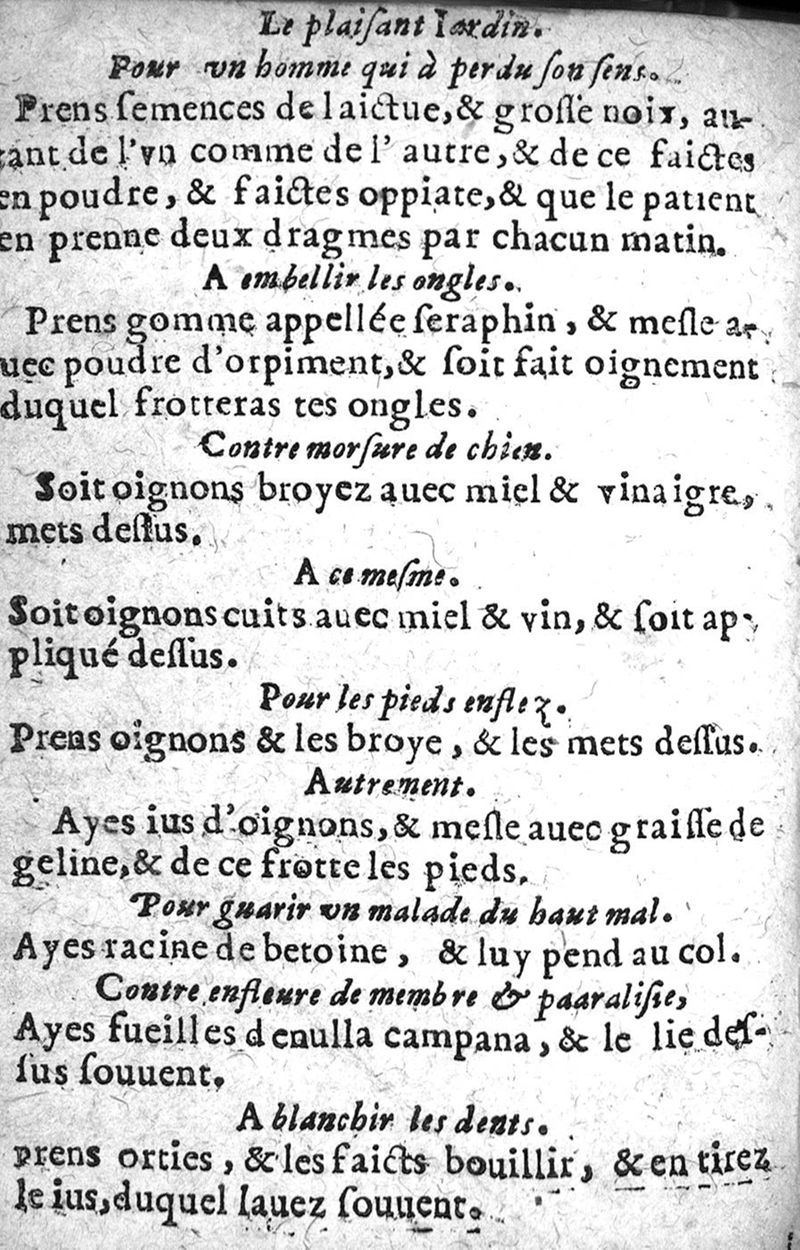 Bastiment de receptes, traduit de l'italien en françois, augmenté d'une infinité de beaux secrets depuis peu mis en usage, avec un autre petit traité de recepte intitulé le plaisant jardin,