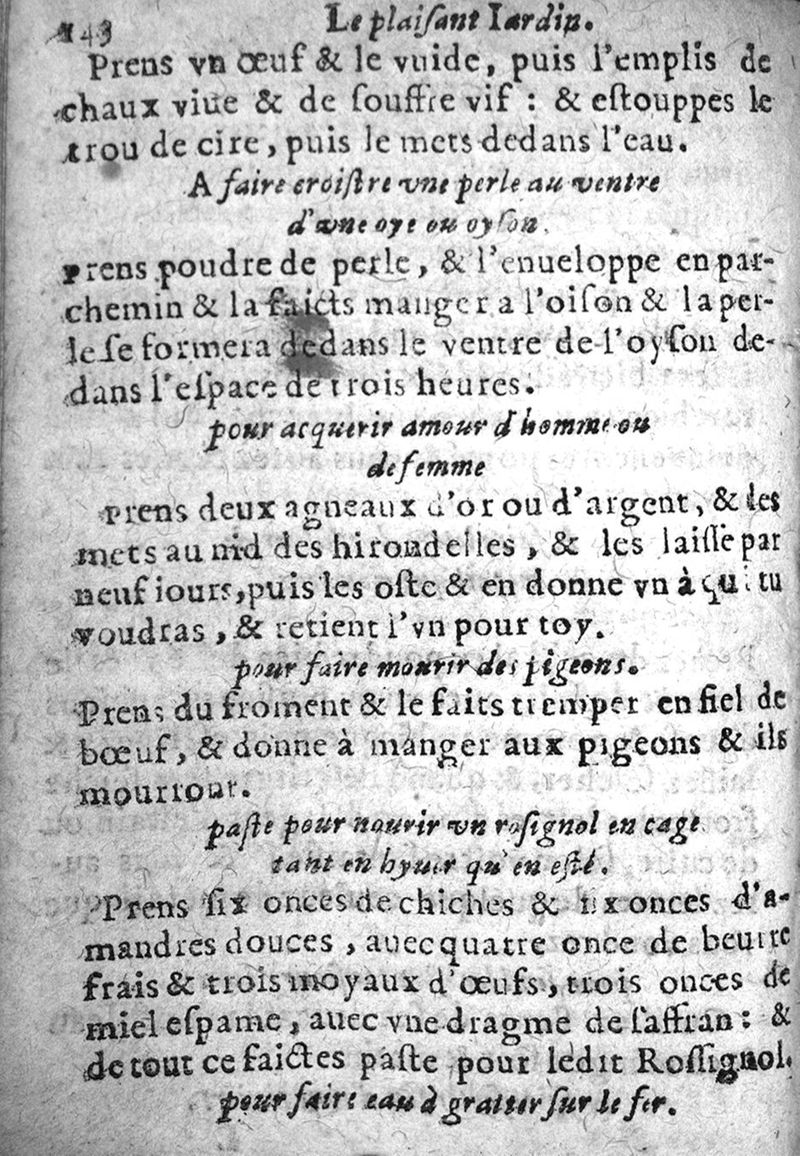 Bastiment de receptes, traduit de l'italien en françois, augmenté d'une infinité de beaux secrets depuis peu mis en usage, avec un autre petit traité de recepte intitulé le plaisant jardin,