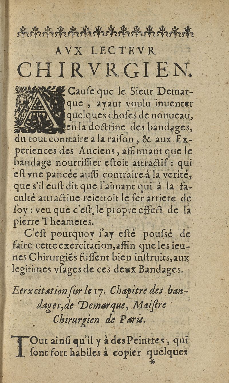 Traicté chirurgical des bandes, laqs emplatres, compresses, astelles et des Bandages en particulier plus les observations des cures facites,...